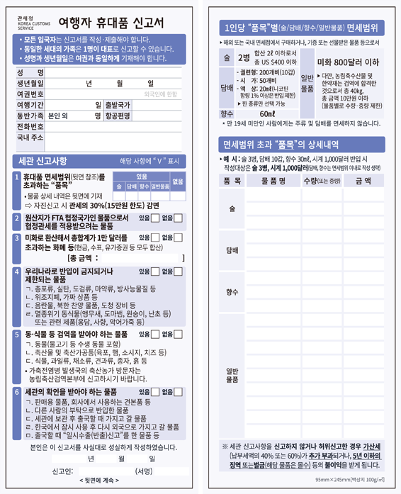 기내에서 작성해야 할 사항