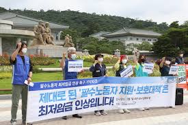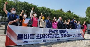 노동계는 내년 최저임금으로 올해보다 25%가량 오른 시급 1만2000원을 공식 요구했다. 노동계는 높은 인플레이션에 따른 실질임금 하락을 이유로 들었다.