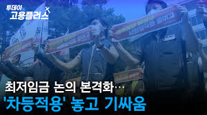 반면 재계에서는 최저임금 동결을 요구하고 있다. 동시에 최저임금 차등 적용을 도입해 숙박·음식 등 임금 지급 여력이 없는 업종에 대해서는 최저임금을 낮게 책정해야 한다고 한다.