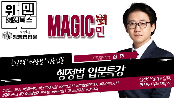 경찰공무원 강의 바로가기>>심민교수님의 마법같은 행정법은 변호사, 경찰공무원 뿐만 아니라 앞으로 행정법을 포함한 시험강의도 편성할 예정입니다! !